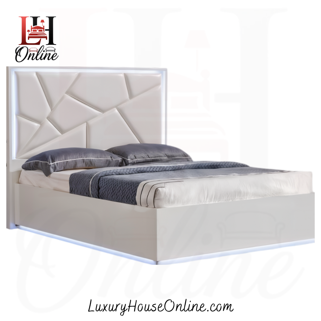 Transform your bedroom into a modern luxury suite with the Glasgow White LED Bed Frame with mattress. This isn’t just a place to sleep; it is a bold architectural statement piece. Defined by its striking geometric headboard and immersive lighting, the Glasgow bed is designed for those who want their furniture to stand out.