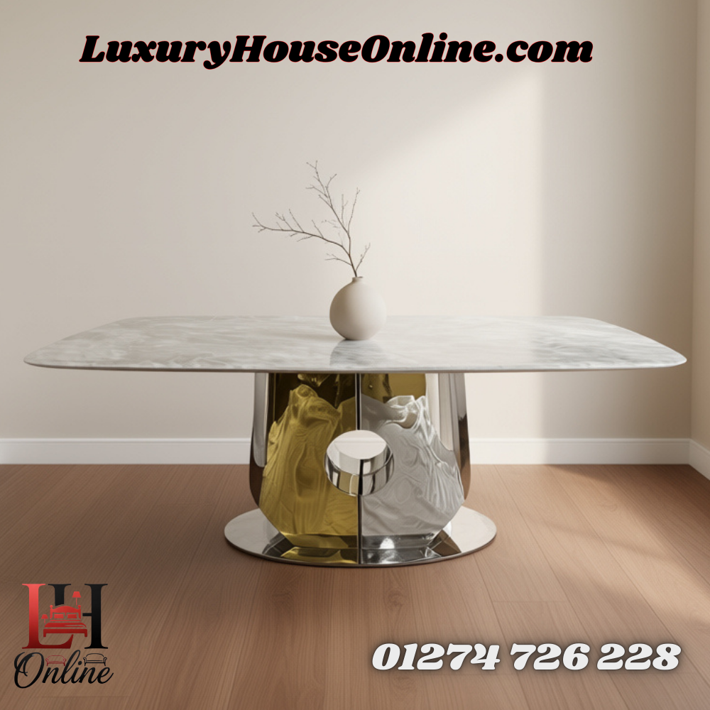 Madrid Luxury Marble Coffee Table Dining Table – Sculptural Gold & Silver Base LH Online