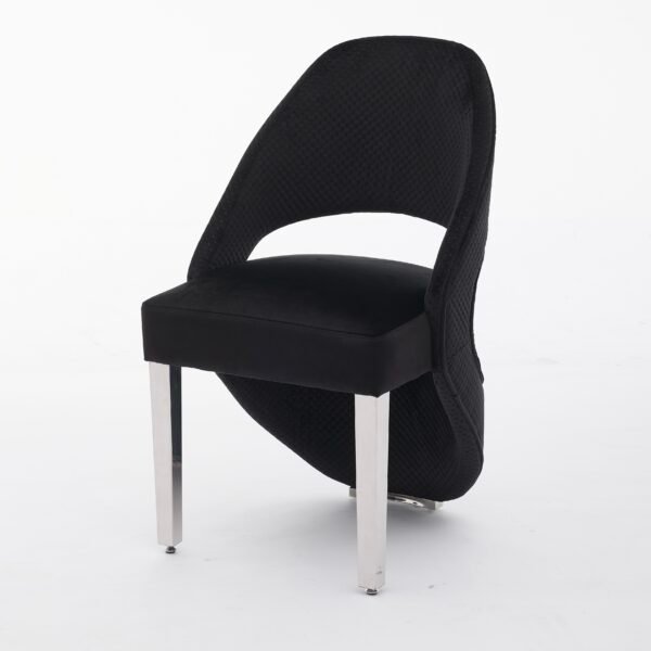 This grey and black dining chair with a silver frame adds comfort and a modern touch to your dining space.
