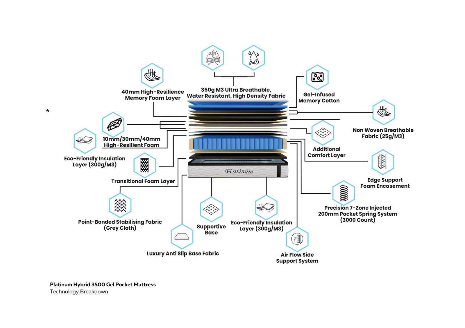 Step into a new world of restorative sleep with the Platinum 3500 Pocket Gel Mattress. As the flagship model in our collection at Luxury House Online, this 13.5-inch (34cm) deep hybrid mattress is engineered for those who refuse to compromise on comfort, support, or temperature regulation.