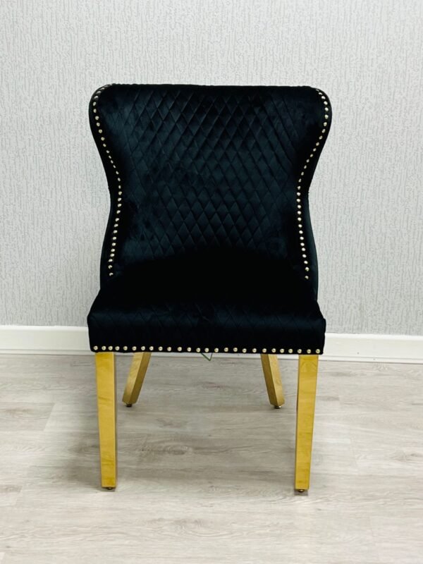 The Valentino Black Gold Velvet Chair is a stylish and elegant seating option for modern homes. The soft black velvet gives a rich and luxury feel, while the gold finish adds a classy touch. This chair is perfect for dining rooms, bedrooms, or dressing areas where you want comfort with a premium look.