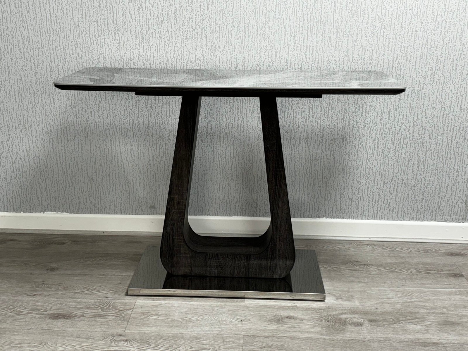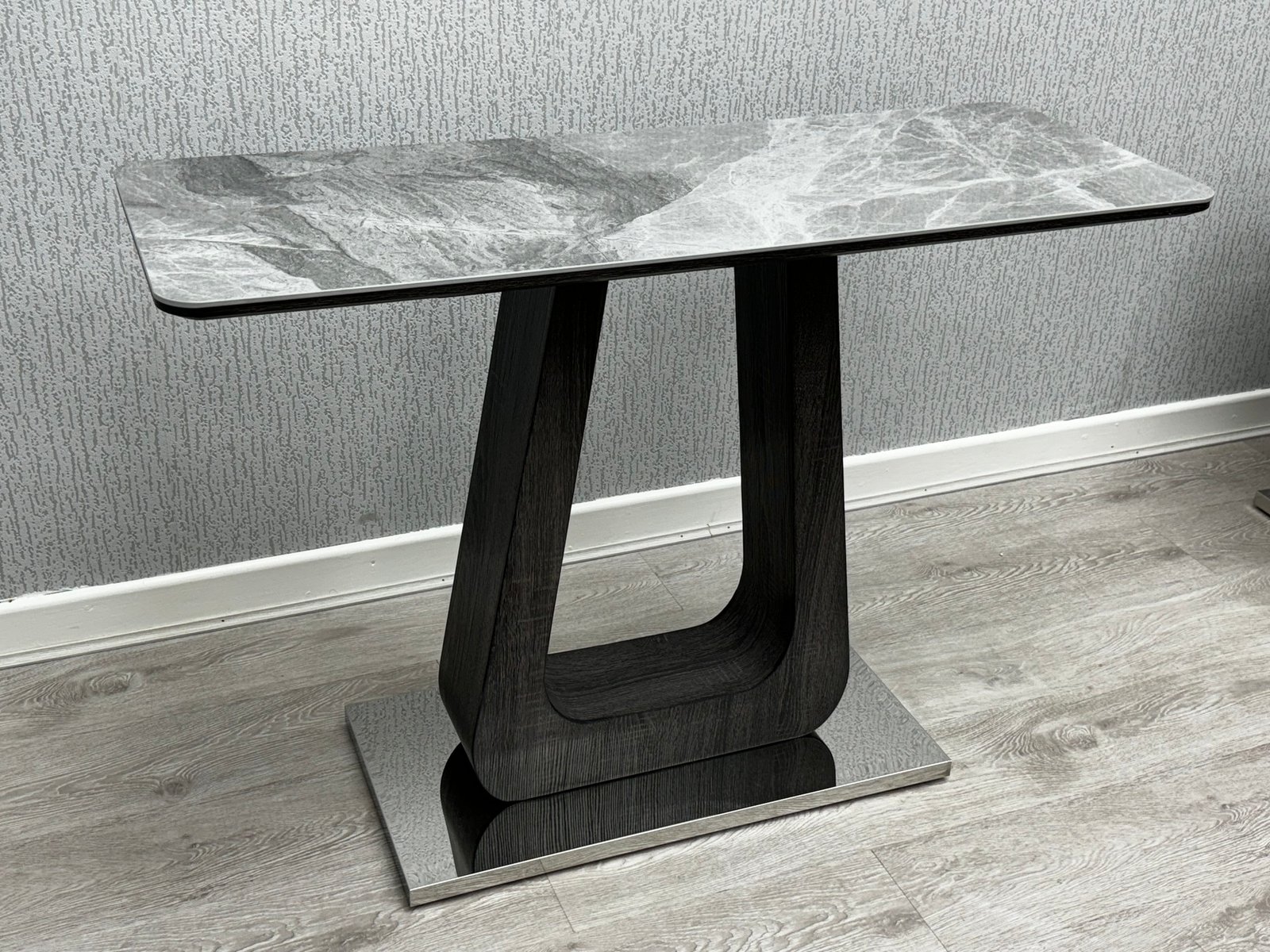 The Zermatt Grey Ceramic Console Table is a sleek and modern piece designed to add style to your hallway or living space. The grey ceramic top gives a clean stone-effect look, while the strong base keeps the table stable and practical. It is perfect for displaying décor, lamps, or everyday items.